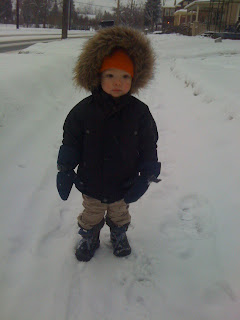 Jude seems to like it here, he loves to be outside. We had a couple of miserable walks with him testing out his stamina and tolerance for the cold. Conclusion: over an hour in temps below 20 is a bad idea. Kevin rigged a sled to a backpack to pull Jude in when the snow is high. He also likes to ride in the backpack with Kevin in his snowshoes.
